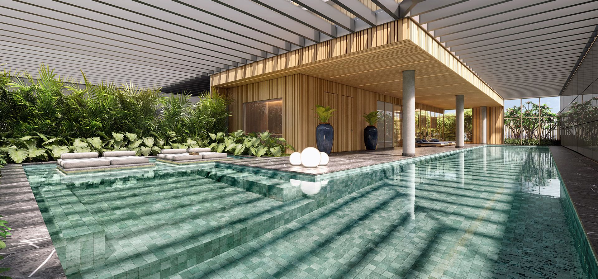 Бассейн с пальмами в элитном комплексе нового девелопмента — роскошные условия для комфортного проживания и инвестиций