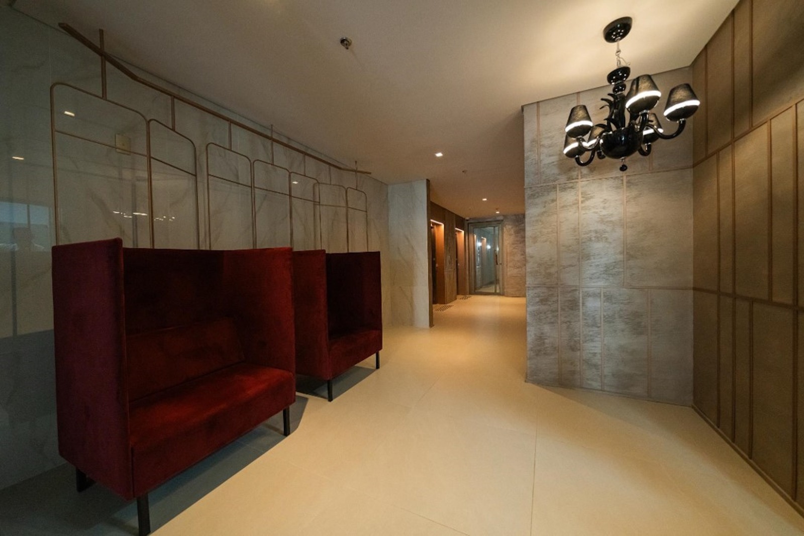 • Lobby with a mirrored water feature and ceiling heights up to 9.5 m