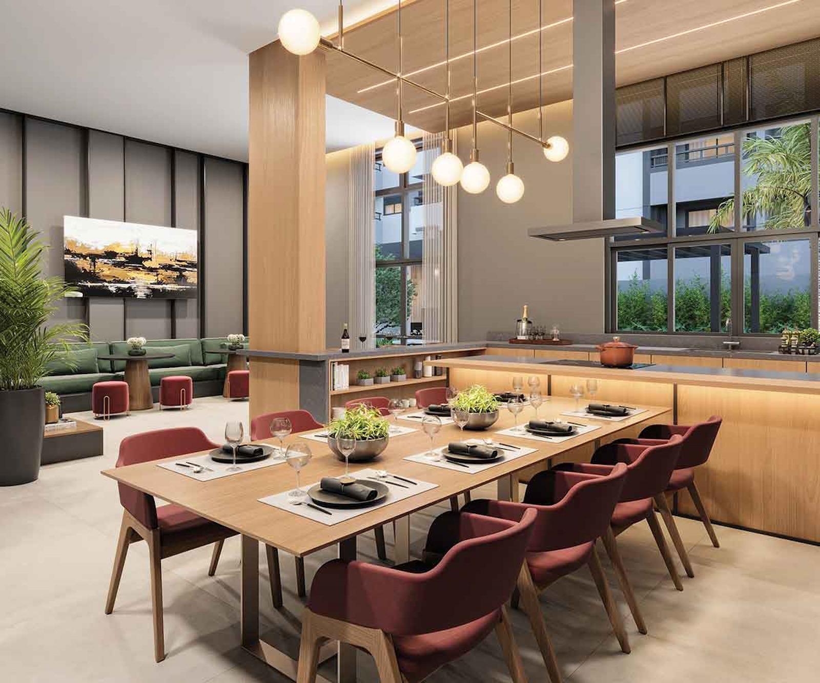 - Espaço gourmet, event lounges, coworking space