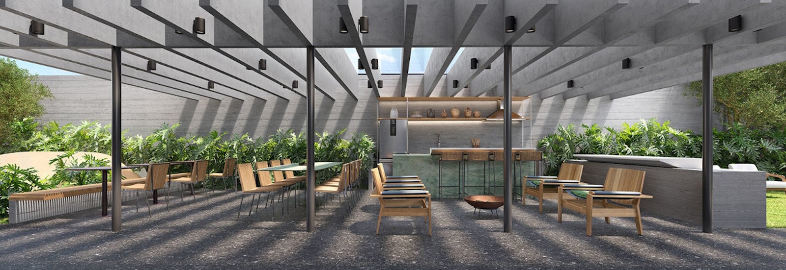 – терраса с камином и лаунж-зоной Sunken Living;