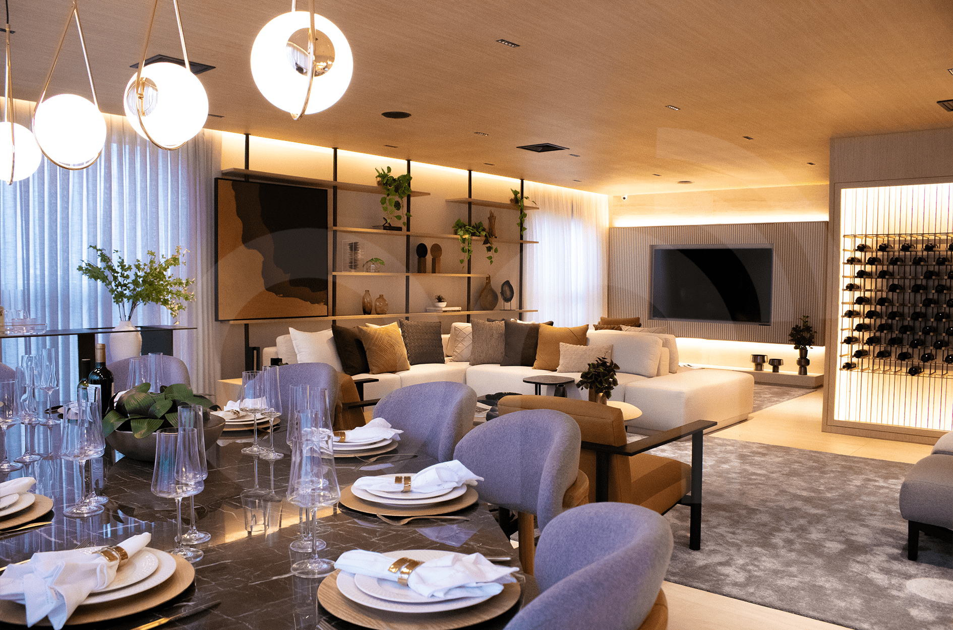 - Салон для вечеринок: Просторная зона для мероприятий и гурме