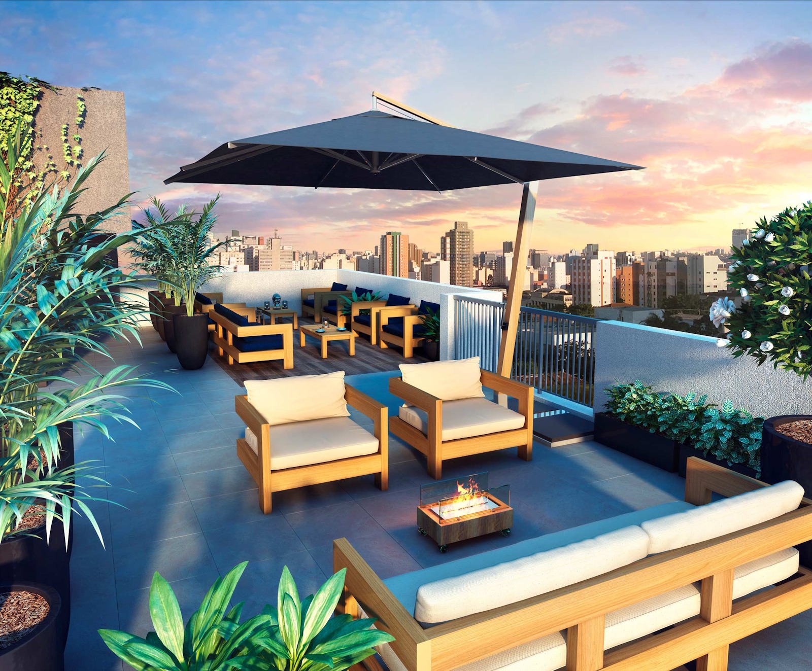 - На крыше: spa с панорамным видом, зона барбекю и лаунж с грилем